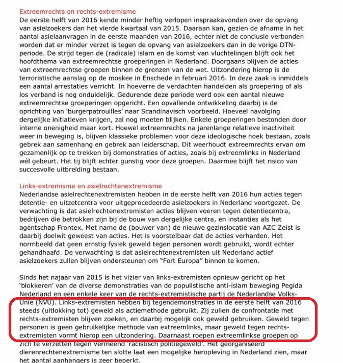 De AIVD waarschuwt in haar jaarverslag ook niet voor geweld van PEGIDA maar wel van de Links-extremisten